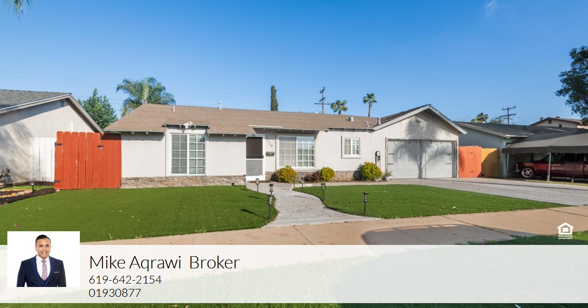 Welcome to 1729 Burnet Street, a move-in-ready single-story home in a quiet El Cajon neighborhood with great mountain views. This 1400 sqft, 4-bedroom, 2-bathroom house sits on an extra-large 6,600 sq. ft. lot and makes a great first impression with a stamped concrete driveway and low-maintenance turf in the front yard.