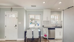 This 1360 sq. ft. single-story residence in El Cajon, California offers a harmonious blend of modern design and practical living. The home features three bedrooms and two bathrooms, with the primary bedroom boasting a generous 290 sq. ft. of space. The recently renovated kitchen showcases crisp white cabinetry, stainless steel appliances, and sleek countertops, creating an inviting culinary space. Large windows throughout allow ample natural light, enhancing the home's bright and airy ambiance. The living room is spacious and well-appointed, ideal for relaxation or entertaining. Both bathrooms are tastefully updated, with one featuring a stylish vanity and the other a modern walk-in shower. Hardwood floors run throughout, adding warmth and continuity to the space. The property also includes a utility room with laundry facilities. Outside, a covered patio area extends the living space outdoors. With its contemporary finishes and thoughtful layout, this home offers a comfortable and stylish living environment in a desirable El Cajon location.