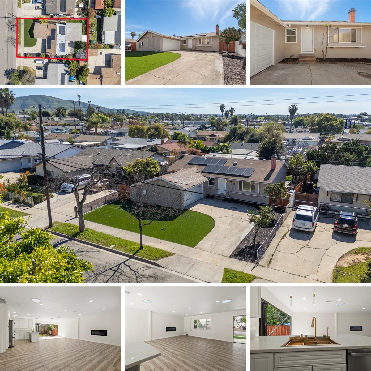 The expansive 6,400 sq. ft. lot is a private oasis featuring a large trellis with sweeping views of Mt. Miguel, mature fruit trees, and a detached studio with a glass door perfect for a creative home office. The lifestyle here is unmatched, boasting one of the best walk factors in San Diego. You are directly across the street from Spring Valley’s largest shopping district, including Starbucks and Vons, and all three levels of schooling—primary, secondary, and high school—are located less than a mile away. Immediate access to the 125 freeway provides a direct link to the rest of San Diego. The private quarters include a generous primary suite and two additional bedrooms featuring elegant updates and modern gold hardware. Complete with an attached garage and low-maintenance stucco finish, this turnkey property is a rare combination of high-efficiency technology, luxury, and location.